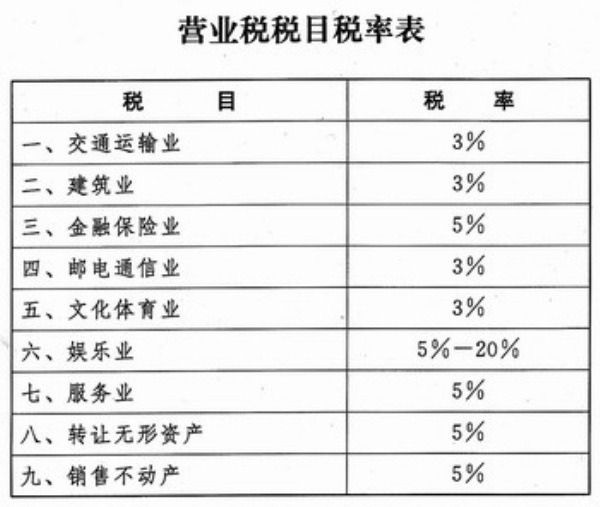 第十七条 本条例自2009年1月1日起施行。 附:营业税税目税率表