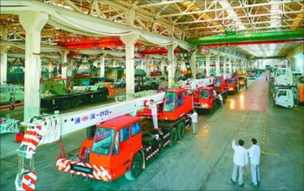 | 长沙中联重工科技发展股份有限公司起重机流水生产线。该公司坚持自主创新,相继研发生产出具有完全自主知识产权的10大系列、100多个品种的主导产品,在当地企业中起到了良好的示范作用。 |