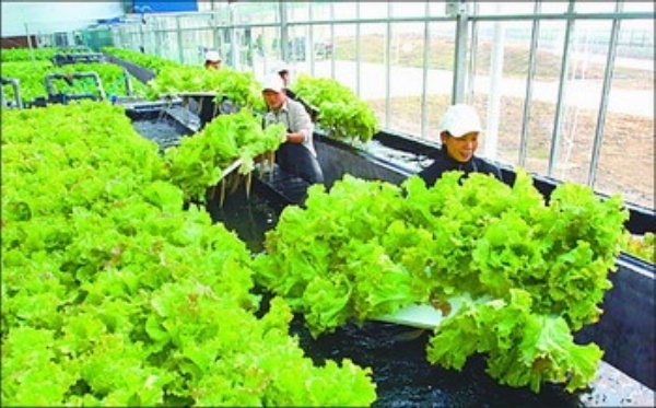| 长沙县黄兴镇现代农业科技园,工人们正在采收水培蔬菜,这些新鲜、无公害的水培蔬菜当日就可进入市民的“菜篮子”。近年来,长沙市大力发展现代农业,不断加大农业科技投入力度,提高了农业生产的专业化、标准化与规模化水平。 |
