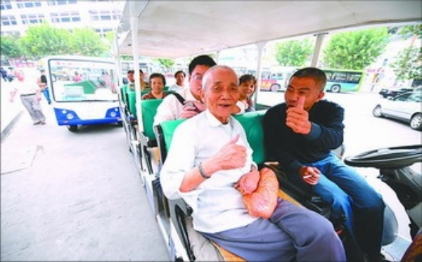 | “以前出个门要走很远的路,现在小区有了环保电瓶车,方便多了!”长沙市雨花区左家塘街道红花坡社区便民车上,78岁的何正池老人(左)高兴地说。该小区地处偏僻,出行十分不便,为此社区推出了3台便民电瓶车,极大地缓解了居民出行难。 |