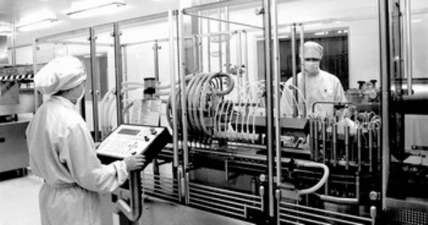 潘高寿蛇胆川贝液生产线上工人正在忙碌。图片由潘高寿公司提供