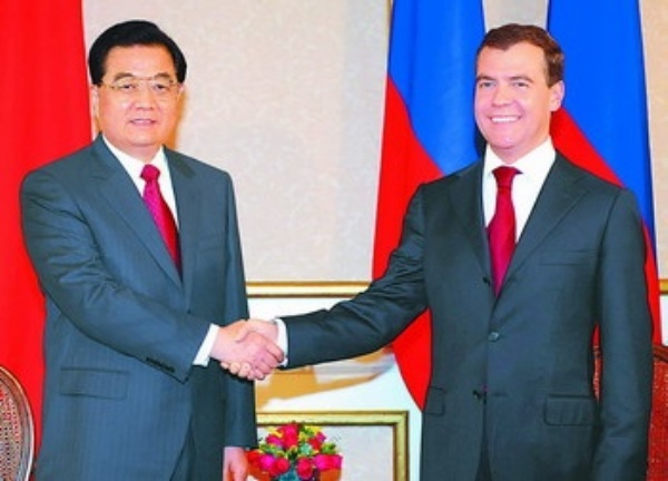 胡锦涛积极评价中俄战略协作伙伴关系,表示当前中俄关系发展势头良好,不断取得新发展,两国政治互信持续增强,彻底解决边界问题为双边关系发展扫清了政治障碍,基础更加牢固;双方在涉及对方核心利益的重大问题上继续相互坚定支持,战略对话和协作不断深化;两国务实合作成果显著,我们今天正式批准了《〈中俄睦邻友好合作条约〉实施纲要(2009—2012年)》,这一重要文件将为今后几年双方深化务实合作发挥重要指导作用。明年是中俄建交60周年,还将在中国举办“俄语年”。我们要抓住这一契机,全面落实双方达成的各项协议和共识,推进务实合作,加强在国际和地区事务中的协调和配合。
