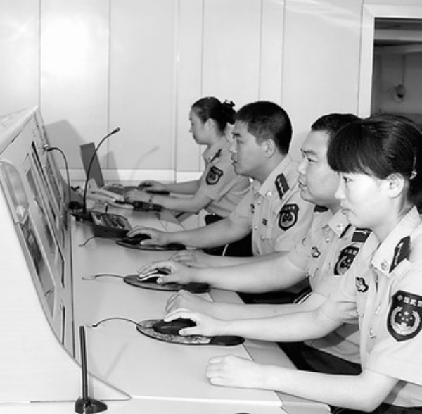 满洲里边检站官兵利用电子监控网络对进出口现场情况进行监管,有效促进了口岸通关效率的提高。许跃芝摄