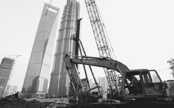 11月18日,工人们正在上海浦东陆家嘴金融贸易区工地内施工。