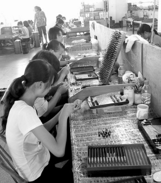 如何进一步拓展企业的利润空间?依人笔业曾经尝试过做中性笔,然而由于机械化、大规模生产的中性笔生产,文港的技术、设备、人才都比不过长三角一带的企业,最终放弃了。“金属笔是半手工制作的,这是文港的特点与优势,应该进一步发挥。”