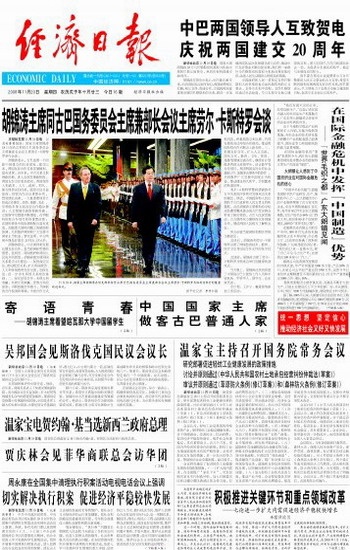 胡锦涛主席同古巴国务委员会主席兼部长会议主席劳尔·卡斯特罗会谈