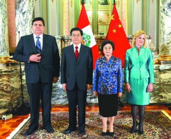 会谈后,胡锦涛和加西亚出席了两国经济技术、卫生、海关、扶贫、金融、矿业、农业等11份合作文件 签字仪式。两国领导人还见证了秘鲁3所大学建立孔子学院授牌仪式。