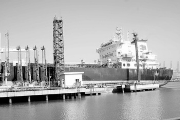 11月20日,一艘油轮在天津港石化码头作业。 截至目前,天津港今年货物吞吐量已完成3.1亿吨,集装箱吞吐量已完成723万标准箱,双双超过去年全年水平。预计天津港今年全年将完成吞吐量3.5亿吨、集装箱850万标箱。 扈 明摄 (新华社发)