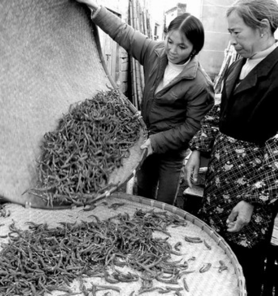 11月10日,江西婺源县段莘乡种植户王有全一家人在挑拣优质红辣椒。正值辣椒收获季节,无公害红辣椒受到消费者青睐,种植红辣椒成为当地农民增收的主要途径之一。 王国红摄(中经网供图)
