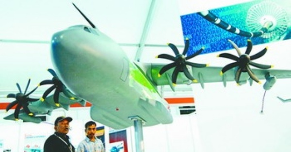 11月19日,在印度尼西亚首都雅加达的哈利姆空军基地,两名参观者欣赏一架飞机模型。当天,2008国际国防航空博览会在雅加达的哈利姆空军基地举行,共有来自37个国家的400多家参展商参展。 新华社记者 岳月伟摄