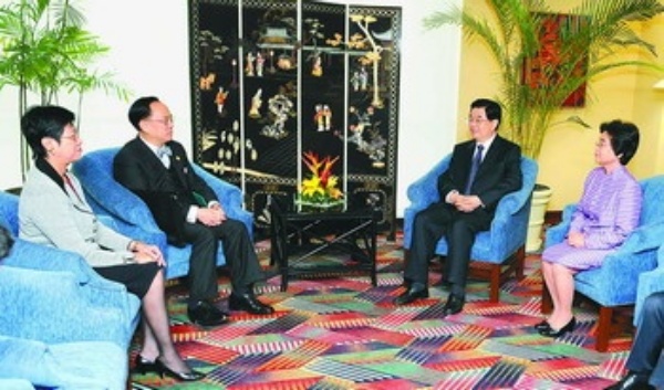 本报利马11月22日电 记者严恒元 唐昊报道:国家主席胡锦涛和夫人刘永清22日在利马会见了前来出席亚太经合组织第十六次领导人非正式会议的香港特别行政区行政长官曾荫权和夫人曾鲍笑薇。