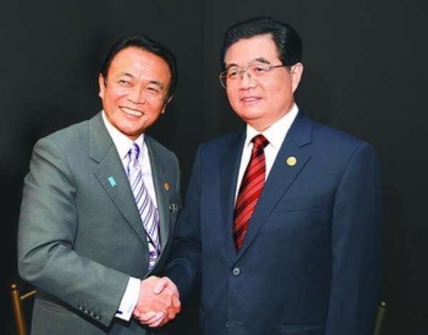 本报利马11月22日电 记者严恒元 唐昊报道:国家主席胡锦涛22日在利马会见了日本首相麻生太郎。