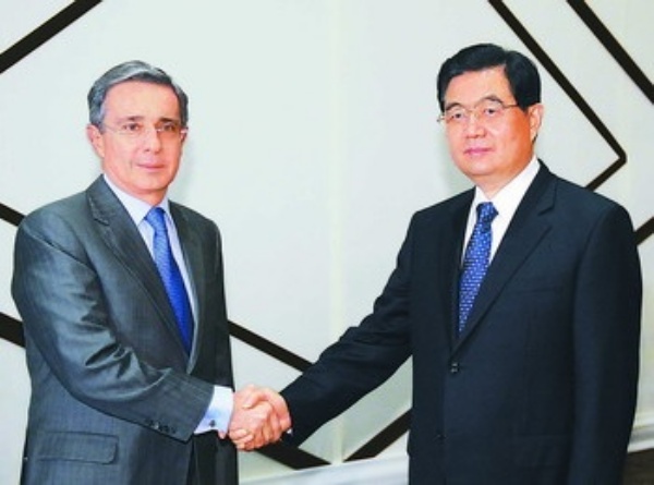 胡锦涛主席会见哥伦比亚总统乌里韦