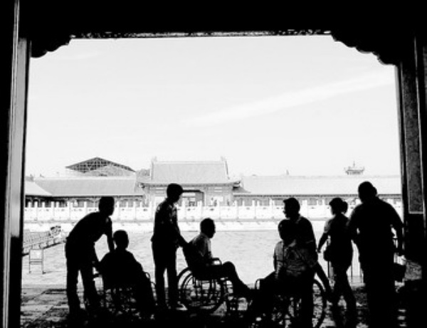 2008年9月10日,几位残疾人在故宫游览。北京故宫加强无障碍设施建设,残疾人游客可以通过北京故宫中轴线东侧的无障碍设施,游遍紫禁城内“三大殿、后三宫、御花园”等核心景观。
