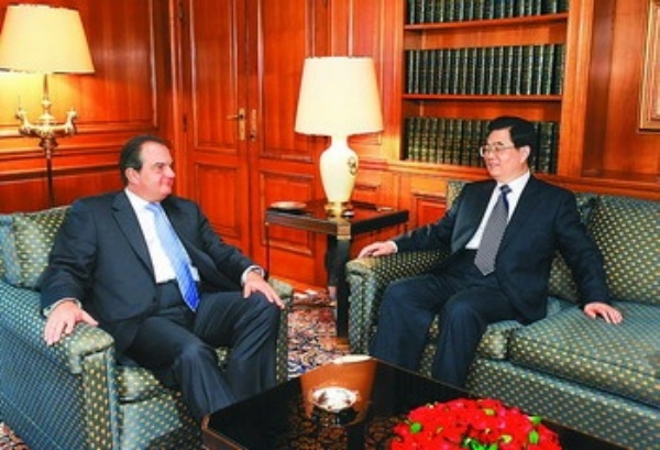 胡锦涛主席会见希腊总理卡拉曼利斯