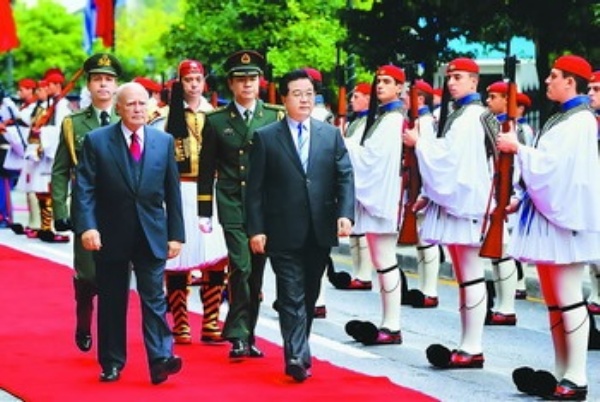 会谈前,胡锦涛出席了帕普利亚斯为他来访举行的隆重欢迎仪式。