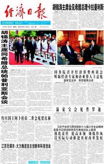 胡锦涛主席会见希腊总理卡拉曼利斯