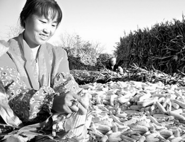 河北省盐山县北芦村40多万亩玉米、高粱、大豆等粮食作物喜获丰收。傅新春摄(中经网供图)