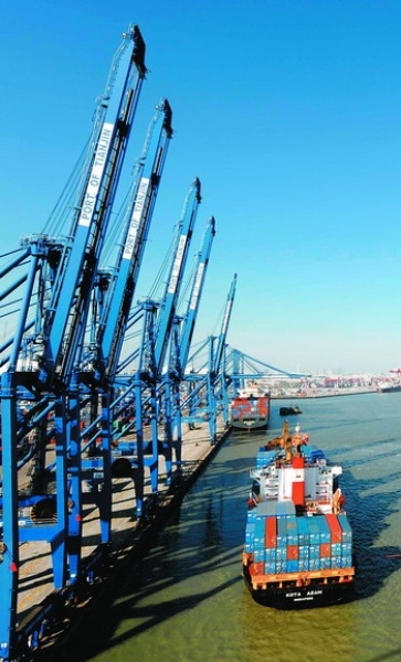改革开放30年来,天津港坚持高起点规划、高水平建设,根据国民经济的需要不断调整港口产业结构和布局,步入了发展速度最快、发展质量最好的时期。这是天津港五洲国际集装箱码头。 新华社记者 杨宗友摄