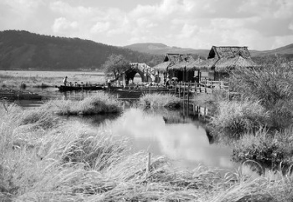 11月27日,在蓝天白云的映衬下,游客欣赏北海湿地的冬日美景。 位于云南西部的腾冲北海湿地保护区,是我国首批公布的全国33处国家重点湿地之一,也是云南省唯一的国家湿地保护区。 新华社记者 秦 晴摄