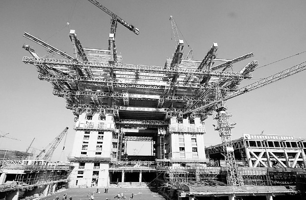 中国馆共有4座核心筒,分别高69.2米,每座24层。核心筒浇筑完毕,整个中国馆已完成近四成的工程量,中国馆将在今年年底全面结构封顶、明年10月1日启动布展。