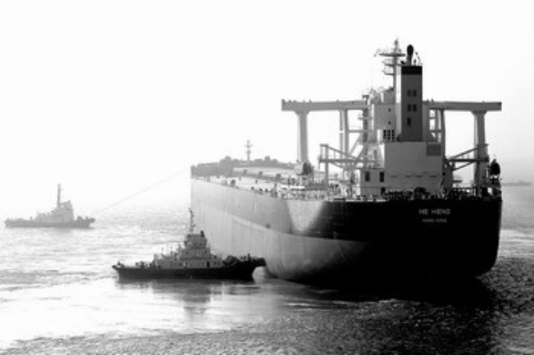 12月1日,我国建造的首艘30万吨矿石运输船“中远川崎56号”离开码头,下水试航。