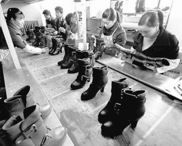 12月8日,浙江省温岭市冠奇鞋业有限公司的职工正在生产皮鞋。12月1日起,我国进一步提高部分劳动密集型产品、机电产品和其他受影响较大产品的出口退税率。鞋、帽等商品的退税率由11%提高到13%。 新华社记者 王小川摄