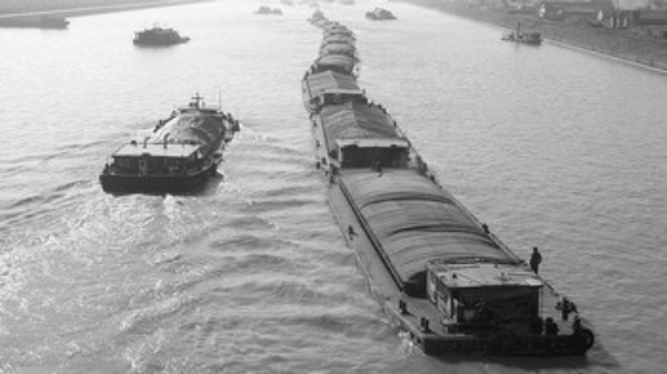 12月10日,运输电煤的船队经过京杭大运河扬州段。