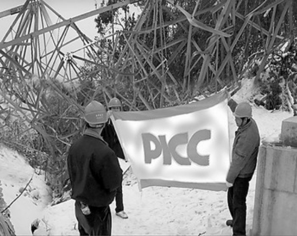 上右图 中国人保工作人员在今年初低温雨雪冰冻灾害的现场查勘、理赔。