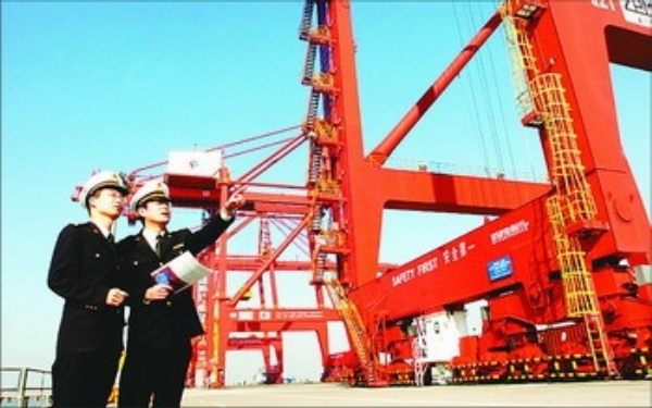 海关关员在太仓港码头现场监管服务。近年来,南京海关积极推进区域通关改革,实施海关监管资源联动整合,“苏太联动”快速通关模式等,促进了江苏各类口岸整体功能的不断提升。