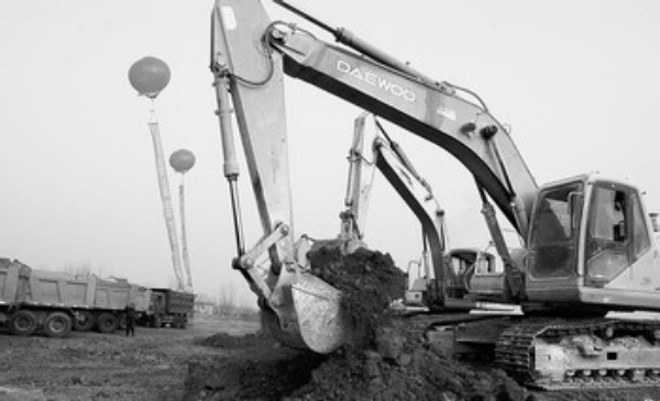 12月12日,一辆挖掘机在上海至西安高速公路江都至六合段施工现场作业。