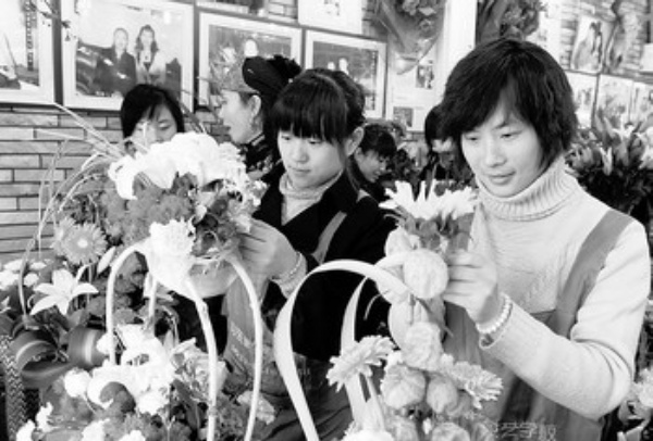 面对大学生就业难的局面,山东一些应届大学毕业生做好自主创业的准备,仅在山东轻工学院就有近十位女生准备自己开花店,为此她们特意来到花艺职业培训学校参加花艺培训。新华社记者 范长国摄