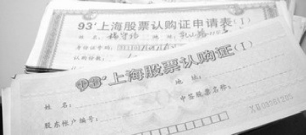 类似杨守伦这样通过炒股致富的故事越来越多,人们争先恐后地想挤进这个市场。而当时股票发行量小,买的人多,管理层就想了个办法,发行股票认购证,凭证抽签购买股票。“这叫抢跑道!喏,就是这种!”杨守伦递来一张粉红色的小纸片,上面写着“93上海股票认购证申请表”,填写着姓名、身份证号、住址、申购份额和金额。