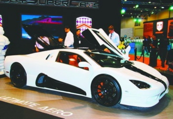 两年一度的阿布扎比国际车展于12月17日至21日向公众开放。本次车展吸引了来自世界各地的80余家知名厂商前来参展,展出车型超过400种,整体规模较上届提升近两倍。图为美国超级跑车制造商Shelby Super Cars研制的SSC Ultimate Aero TT 跑车,该车采用双涡轮增压引擎,最高时速可达432公里/小时,是目前世界量产车速度纪录保持者。本报驻阿布扎比记者 经 凯摄