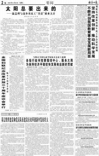 太阳总要出来的———温总理与返乡农民工“共话”就业大计