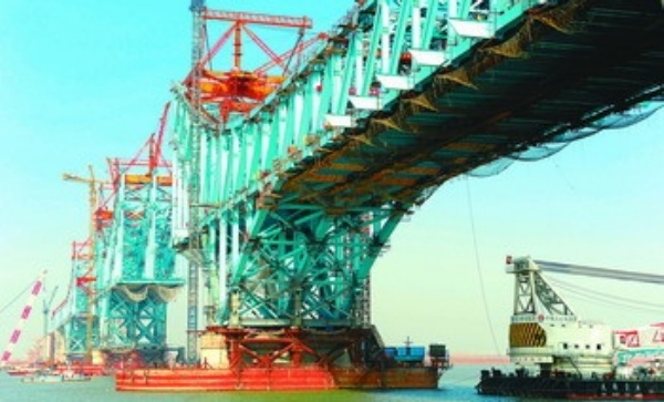 12月24日,京沪高速铁路南京大胜关长江大桥钢梁南北边跨合龙。南京大胜关长江大桥于2006年7月正式开工建设,全长9.273公里。新华社记者 韩瑜庆摄