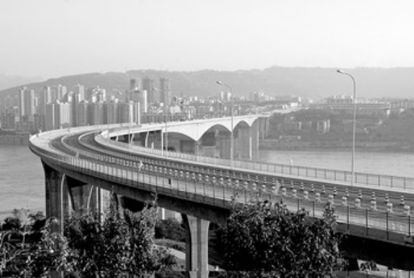 由中国铁建投资建设的世界首座同桥面公路轻轨两用桥———重庆鱼洞大桥日前顺利通车。重庆鱼洞长江大桥全长约1.5公里,桥面宽41.6米,南起重庆市巴南区鱼洞经济开发区,北至大渡口区,可通行双向六车道的汽车和双向两车道的轻轨,在世界桥梁建设中尚属首例。 郑家福 刘文/摄影报道