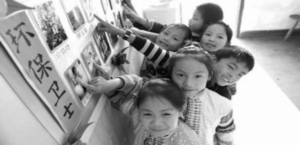 云南省通海县兴蒙乡中心小学的同学在“环保卫士”栏兴奋地寻找自己的照片。据悉,云南省从1999年开展保护母亲河行动以来,共有1300万青少年参与了各类生态保护活动。新华社记者 秦 晴摄