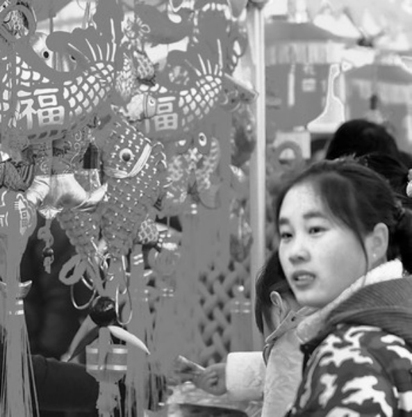 | 下图 1月1日,市民在年货大街选购民间工艺饰品。当日,南京夫子庙年货大街开市,来自天南地北的特色食品、农副产品、节庆饰品、民间工艺品和时令用品等引来众多市民逛街选购。