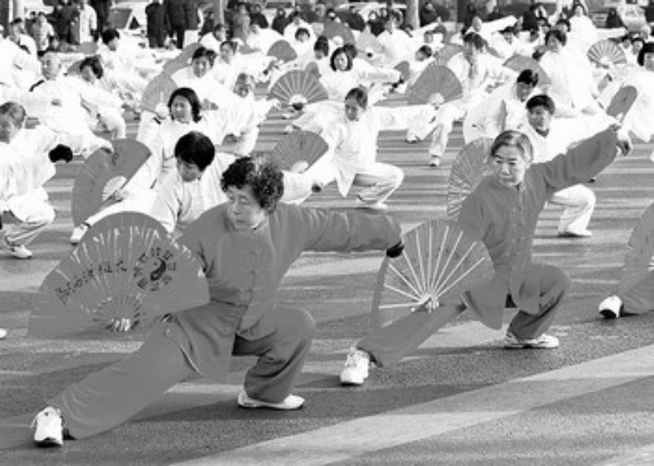 | 1月1日,太极扇爱好者在表演。当日,石家庄市800多名太极拳、太极扇爱好者在石家庄市文化广场表演,庆祝新年的到来。 新华社记者 杨世尧摄 |