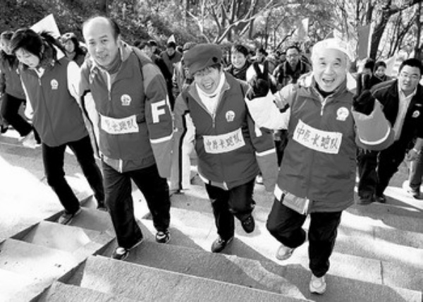 | 1月1日,几位市民正在攀登佘山。当日,上海举行2009年佘山元旦登高活动,4000多位上海市民以登高健身的方式庆祝新年的到来。 新华社记者 裴 鑫摄 |
