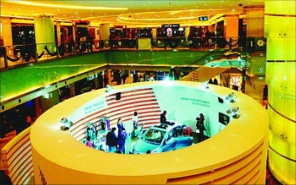 | 1月1日,北京东方广场,轿车在商场内设展,吸引了顾客关注。 本报记者 赵 晶摄 |