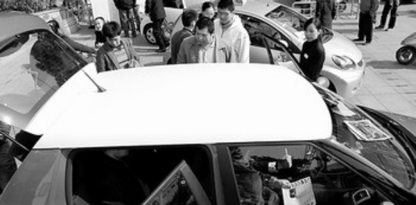 新年伊始,面对2008年跌宕起伏的全国车市,具有价格低、排量小、车身紧凑、个性明显等特点的微型车逐渐成为福州汽车销售的新热点,福州各微型车经销商不失时机地在2009年元旦假期加大促销宣传,努力吸引年轻一族购买微型车。新华社记者 姜克红摄