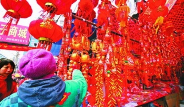 1月5日,人们在武汉市汉正街选购节庆用品。春节临近,各种年货和年节装饰品纷纷上市,生意红火。李理摄(新华社发)