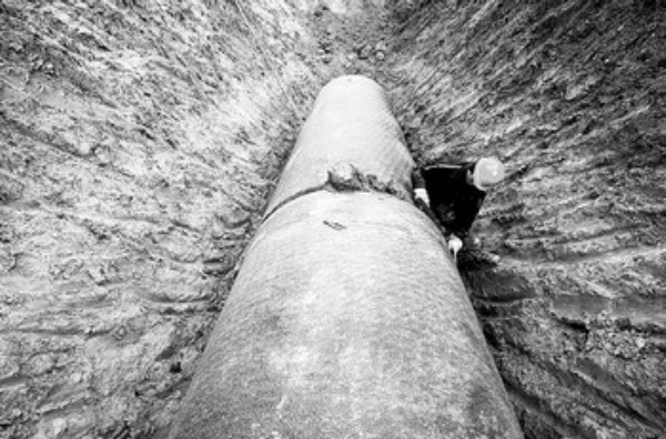 1月7日,在安徽省淮北市李槽坊站站场南侧,技术人员对管道接头外壁进行水泥密闭加固。