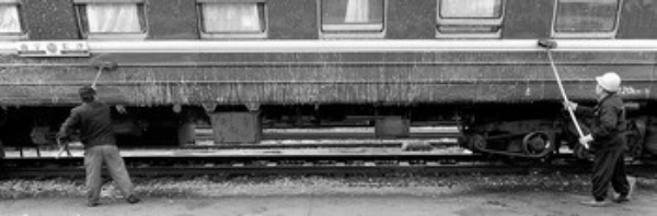 上图 1月8日,工作人员正在对列车进行全面清洗。