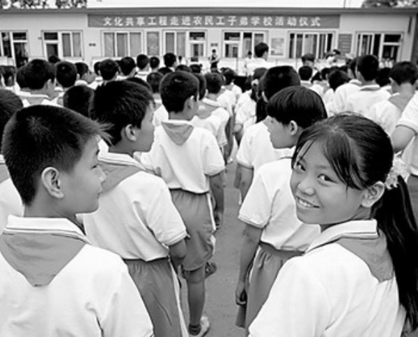 全国文化信息资源建设管理中心的“文化共享工程走进农民工子弟学校”,第一站就选在了北京市海淀区的行知实验学校。管理中心精心挑选了历史地理、文学艺术等280GB的数字资源安装到“移动播放器”上,随时供孩子们观看。行知学校校长李素梅激动地说,服务站点将使这些农民工的孩子学到广博的文化知识,让他们和其他学校的孩子一样健康成长。