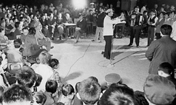 在朝阳区文化馆的老照片中,记者发现了一个现象,就是朝阳区文化馆从历史上就有专业艺术家进社区的传统,比如1979年,中央戏剧学院和朝阳区文化馆联合举办戏剧培训班,罗锦霖、徐晓钟等专家亲自来街道辅导;1982年,朝阳区文化馆在将台乡小井村举办中秋赏月音乐会,著名音乐家时乐 、吕骥、吴祖强等与村民联欢;1983年,“朝阳区文化艺术辅导中心”成立,李德伦、袁世海、新凤霞、黄苗子等著名作家、艺术家都曾来此义务讲课……“9个剧场”之所以在朝阳区文化馆产生,或许正是基于这样的传统吧!
