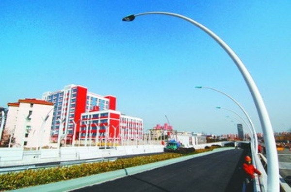1月11日拍摄的上海上中路隧道出口处造型别致的路灯。上海市上中路隧道南线预计在春节前率先实现通车。上中路越江隧道工程是上海中环线南段穿越黄浦江的一个关键工程,全长2.8公里,隧道由南、北线两条平行隧道组成。 新华社发