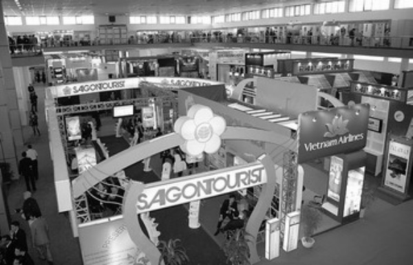 在1月10日开幕的东盟旅游展览会上,来自东盟各国的旅游业者积极参展,为开拓市场、寻求商机而努力。本报驻河内记者 赵青摄